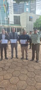 Durante a cerimônia, lideranças da segurança pública foram agraciadas com comendas em reconhecimento aos relevantes serviços prestados e ao compromisso no combate à criminalidade na região de fronteira.