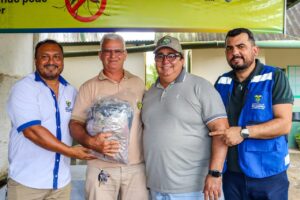 Ao todo, foram entregues 22 kits de trabalho, com o objetivo de garantir mais segurança, conforto e eficiência aos profissionais que atuam diretamente na prevenção e no combate às doenças transmitidas por vetores. Cada kit é composto por três pares de botas, sendo uma do tipo sete léguas, dois bonés, duas blusas, duas calças, uma mochila, uma bolsa, uma gandola, além de protetor solar e coletes, itens indispensáveis para as atividades de campo.