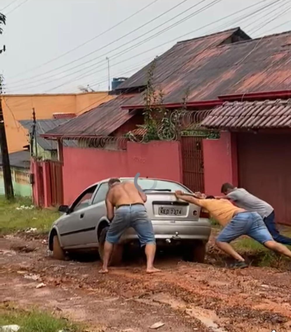 Morar em Epitaciolândia definitivamente não é para amadores. Na manhã deste domingo, 8 de fevereiro de 2026, moradores da Rua Tancredo Neves, no bairro Satel, começaram o dia não com café, mas com força no braço: empurrando um veículo atolado após as fortes chuvas que atingiram a região do Alto Acre. A cena, registrada e compartilhada em grupos locais, escancarou uma realidade que insiste em reaparecer sempre que o céu fecha.